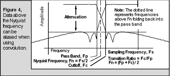 In the convolution method, the impulse response is truncated so the computer algorithm can deal with a finite sized array. The usual approach is to use the Fourier transform as an approximation to the Laplace transform. This assumption, when transformed back to a Laplace representation produces a transfer function which is aliased into the frequency domain as shown in Figure 4. As long as there is no significant energy applied to the input at frequencies above the folding frequency, this approximation holds and results are accurate. Another requirement is to limit the time step of the simulator to match the values in the H(t) array. This causes a substantial performance penalty, making the convolution method a poor choice for all but a few problems. This is the method used by other simulators like Pspice to solve Laplace expressions.