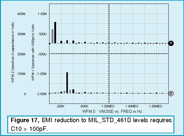 Taking the FFT of the transient response presents the data in a form that can be compared with various EMI specifications. MIL-STD-461D allows for the following conduced interference: