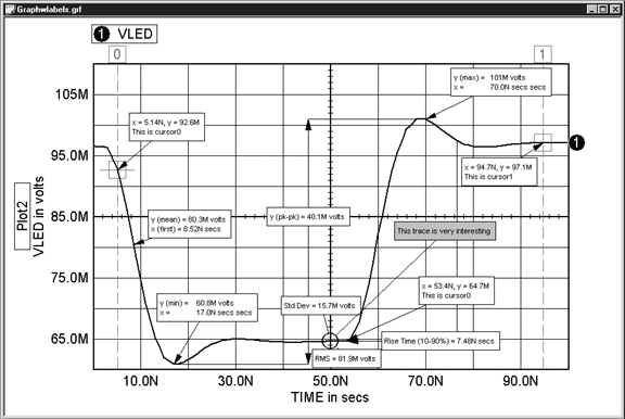 Another enhancement is in regards to waveform labels (Figure 6). Labels for the most common measurements can now be placed directly on any waveform graph (Figure 7) with a single mouse click. These labels can be individually moved, resized, and customized in regards to text font, color, and justification. The background color and border display can also be customized.