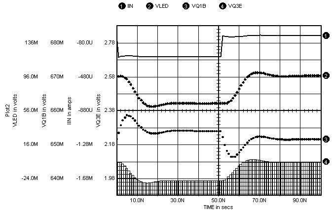 Several plots can now be displayed within a single graph window (Figure 9). You can mix and match different plot types, i.e. Tran, AC, etc. A new function has been added so that you can automatically create a new plot on-the-fly when a selected waveform is displayed.