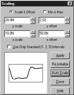 The Y-axis scaling label capability has been improved in order to permit several Y-axis labels to be displayed on a plot. The waveforms in Figure 8 were autoscaled and tiled as they were added to the graph. In this example, all four traces have the same x-axis scaling, and each of the four traces shows its y-axis scaling label.