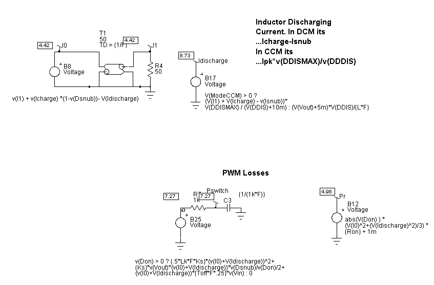 DC Iterations V= .99/(i(VM2)^2/v(Pr)+ .01) * i(VM2); Where I(VM2) is the current through the voltage source and Pr is its dissipation. If you substitute I*V for Pr and assume the .01 term is negligible, the equation reduced to V = .99*V. Without the .99 damping you could get numerical "drift" toward infinity. Another way of looking at it is that this equation looks like something you would get using an op-amp as a voltage follower with infinite gain. This equation was used to model series resistance losses in the PWM models. It makes sure dividing by zero can’t happen and is derived from: V = IR = I/(1/R1 + 1/R2) where I^2*R1 = Ploss, R2 is the max value to eliminate high loss at low currents. As a rule of thumb, the gain should be on the order of 1-reltol. We use reltol = .01 a lot, hence the gain of .99. Note: RELTOL sets the error in the B element calculation. When the change in B element voltage or current is greater than RELTOL*maxval + abstol, the iterations must continue. |