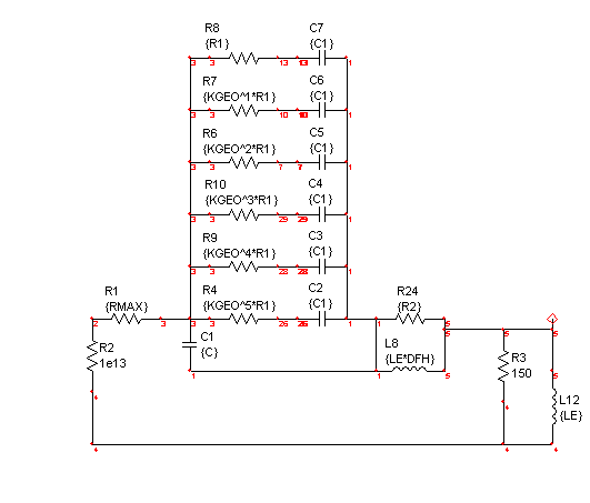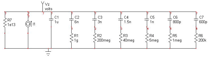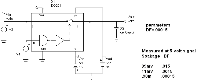 Our objective here is to model ceramic capacitors that are shown to have constant DF over a wide frequency range; hence the geometrically increasing time constants. The model was applied to a sample and hold circuit