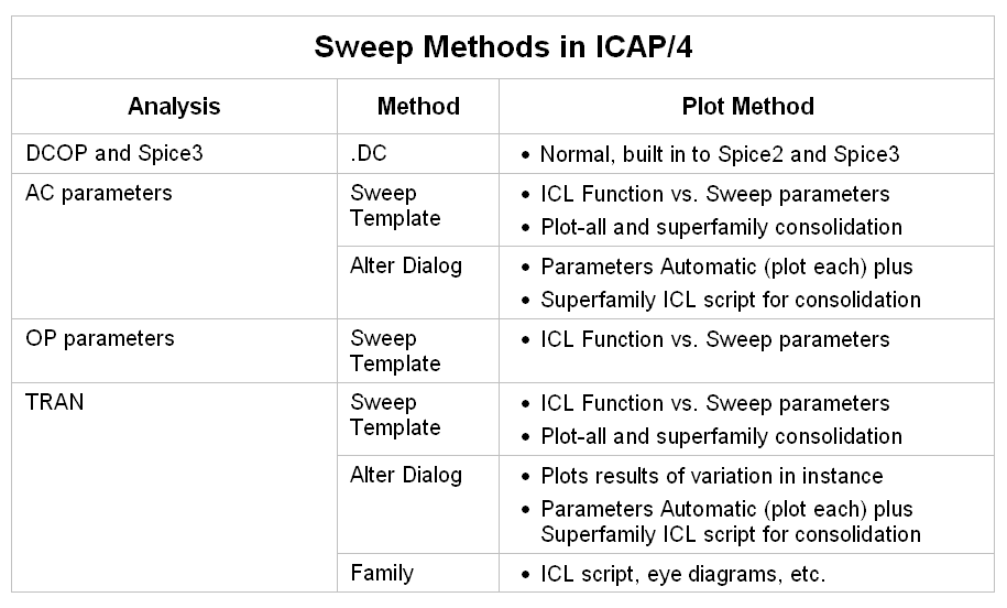To summarize, all of the sweep methods available in ICAP/4 are listed