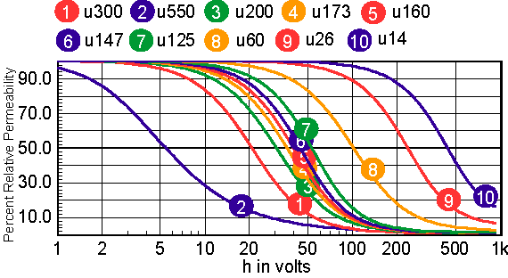 Notice that the permeability curves, for example Figure 5, look very much like magnitude vs. frequency plots. When the slope of log(permeability)/log(H) is an integer multiple of 20db/decade, then an even polynomial ratio can be used to describe the curve, and in theory an integral can be found. Note: the restriction on even values arises from the symmetry of permeability for negative MMF-