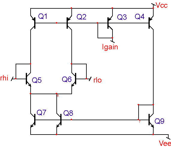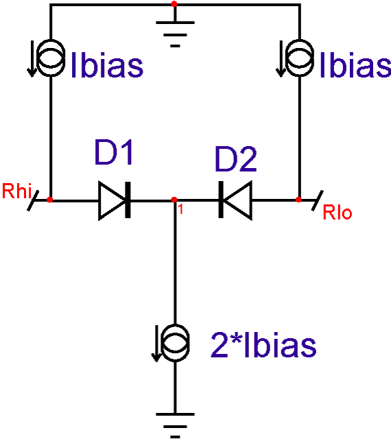As the FET gate voltage exceeds threshold, the FET becomes a resistor. The threshold voltage varies considerably with time and temperature, so you should keep away from the threshold by a volt or so. As the voltage is increased further, the resistance decreases. In the limit, the resistance can’t decrease below the bulk resistance. These upper and lower boundaries limit the useful range of this gain control technique to something on the order of 10:1. For a larger dynamic range, diodes can be used. The circuit is more complex because the diode’s voltage offset must be cancelled by using a pair of diodes. Figure 18 shows the basic idea.