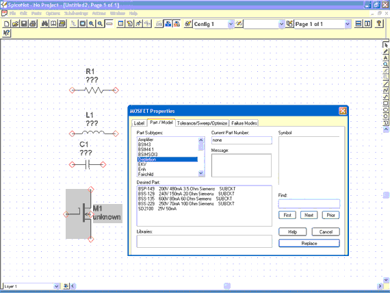 The second main feature in Build 3247 is an automated component conversion capability from generic or real devices, to different real devices, which are acquired from SpiceNet's parts browser. The new feature accommodates resistors, diodes, capacitors, BJTs, JFETs, inductors, and MOSFETs. You can quickly convert generic parts or many real parts, from a selection of similar parts displayed in a dialog. Simply use hotkeys or menu pulldowns to quickly place generic or real devices on your schematic. Double-click on the part to bring up the Part Properties dialog. Select the "Part/Model" tab to see all available parts of that type, select the specific device you want, and press the "Replace" button - very convenient!