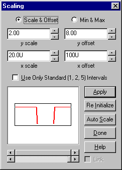 Scaling Dialog includes scale/offset or min/max settings to expand